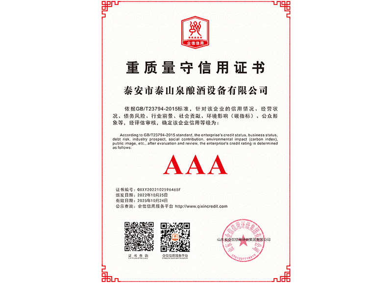 泰安市泰山泉釀酒設(shè)備有限公司,是一家專(zhuān)業(yè)從事釀酒設(shè)備機(jī)械化研發(fā)并集技術(shù)咨詢(xún),工程設(shè)計(jì),制造安裝,人員培訓(xùn)及售后服務(wù)為一體的綜合性企業(yè),本公司主要產(chǎn)品為:大曲清香、小曲清香、大曲醬香、大曲濃香等香型白酒機(jī)械化設(shè)備?! ”竟九c中國(guó)科學(xué)院自動(dòng)化研究所簽訂技術(shù)服務(wù)合同,引進(jìn)先進(jìn)技術(shù),研究生產(chǎn)全自動(dòng)化機(jī)械釀酒設(shè)備,由中國(guó)科學(xué)自動(dòng)化研究所的技術(shù)支持,打造最先進(jìn)的生產(chǎn)釀酒設(shè)備,公司有信心打造全國(guó)最先進(jìn)白酒...
